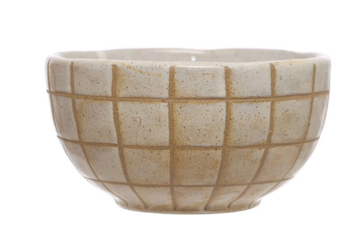 Stoneware Bowl w/ Wax Relief Grid Pattern
